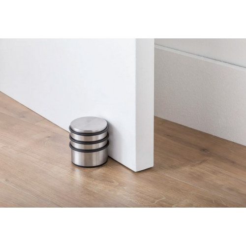Высокий ограничитель дверей напольного типа без сверления пола – надежное изделие, позволяющее избежать порчи отделки на стене, которая соприкасается с дверью при ее открывании. Изготавливается из нержавеющей стали и прочной резины, которая смягчает удар двери об ограничитель. Таким образом, сохраняется не только настенная отделка, но и сама дверь.